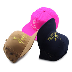 6 painel perfurado Baseball Hat com Laser corte buracos frontal Silicone impressão logotipo
